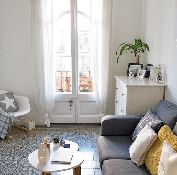 Carla vive en un piso en pleno Eixample de Barcelona, y aunque su piso tiene 65m2 tiene una arquitectura que lo hace precioso. Unos grandes ventanales antiguos blancos dejan pasar un montón de luz en su interior pero es que además, tiene unos preciosos suelos hidráulicos originales que son para quedarte sin palabras!. Ella nos cuenta que no son perfectos, que con el paso de los años tienen alguna mancha, algún roto por los lados pero... ¿Y que?, no sería lo mismo si estuvieran enteros!, eso es lo que los hace especiales.