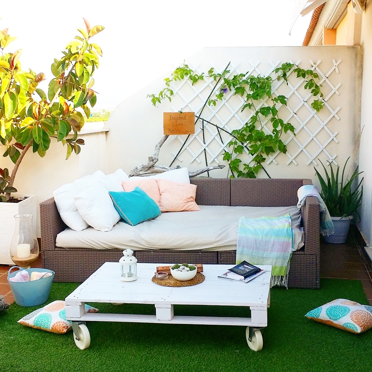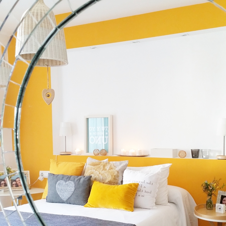 Sus habitaciones principales tienen salida a la terraza, por eso, su casa es tan luminosa. Marisa, diseñó el cabecero de su habitación, que como veréis es super bonito! Mis mas sinceras felicitaciones guapa!, la mesa de centro y otras cositas más.