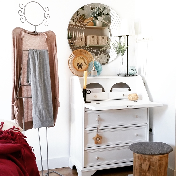 Ella, es muy manitas y le encanta pintar y restaurar muebles, por eso, en su casa, la mayoría de elementos decorativos han pasado por sus manos. Su ático, como veréis tiene 95m2 y tiene una terraza de 40 metros cuadrados, si si, habéis leido bien, 40 metros cuadrados!, es casi tan grande como un piso de los que os enseño normalmente. El ático de Marisa cuenta con un salón comedor, cocina, dos baños y tres habitaciones, las cuales ha adaptado una como despacho y otra como vestidor.