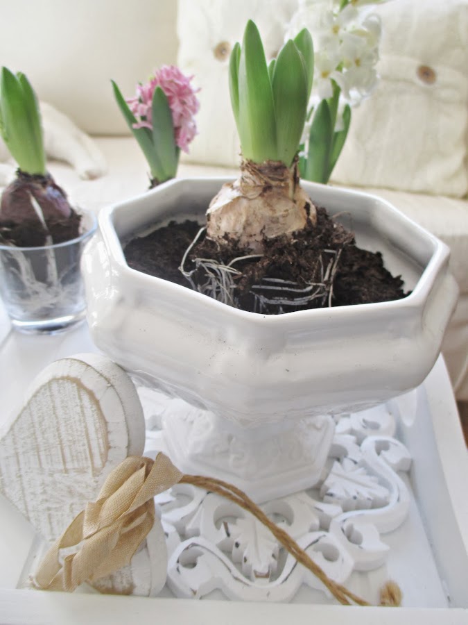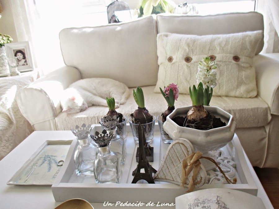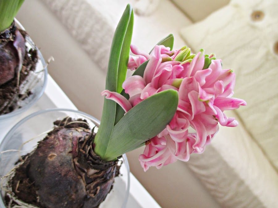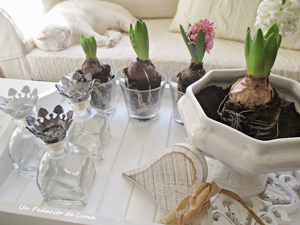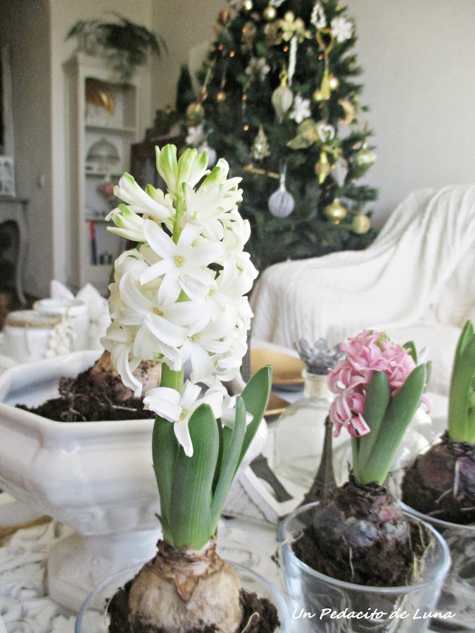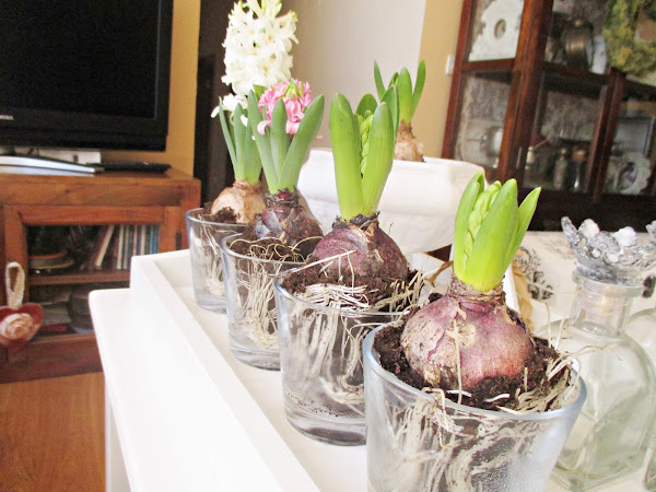 Los jacintos están en pleno apogeo y esparcen su aroma por toda la casa, ummm....