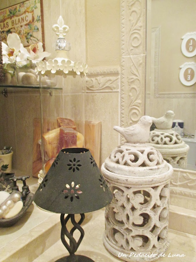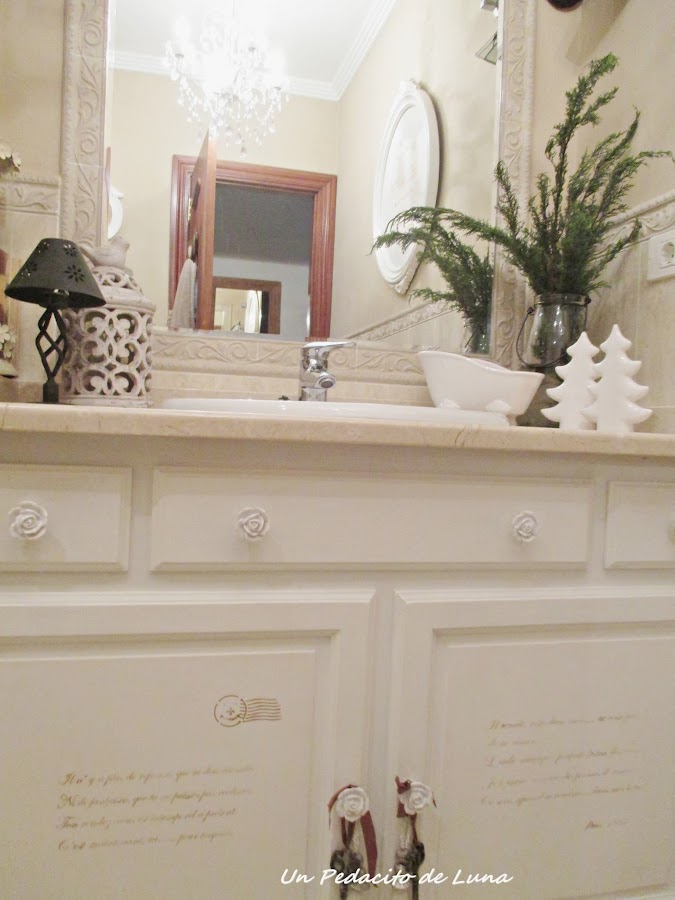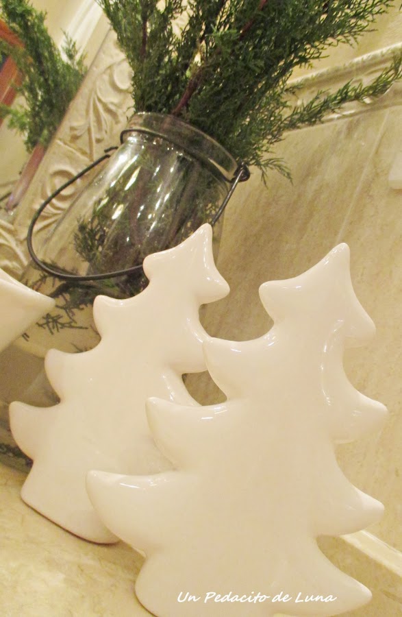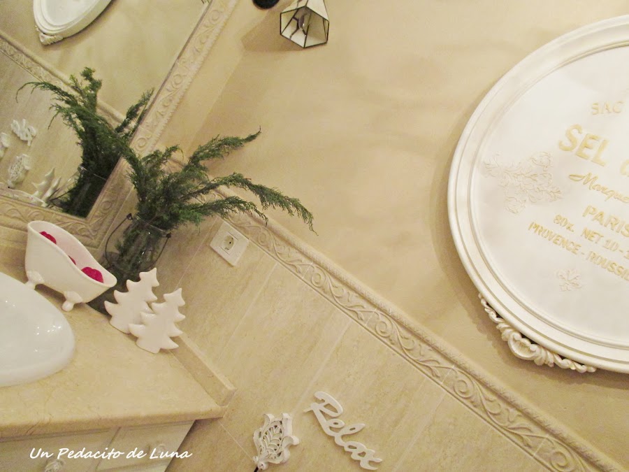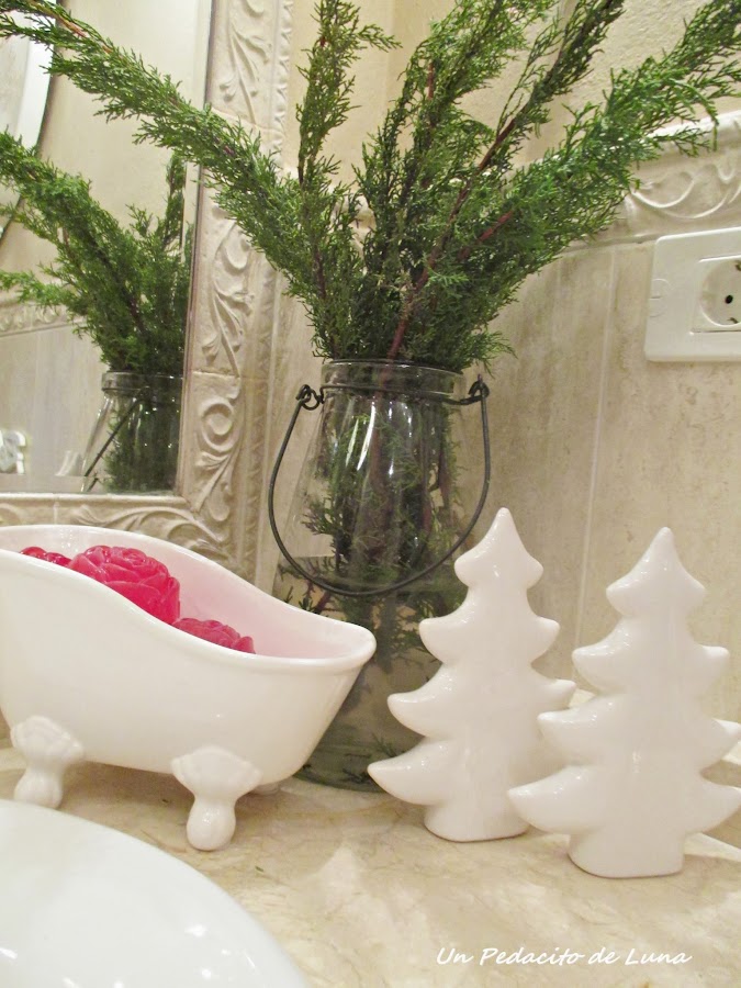 En el aseo alguna pequeña decoración con ramas de pino, unos abetos de loza blanca.....