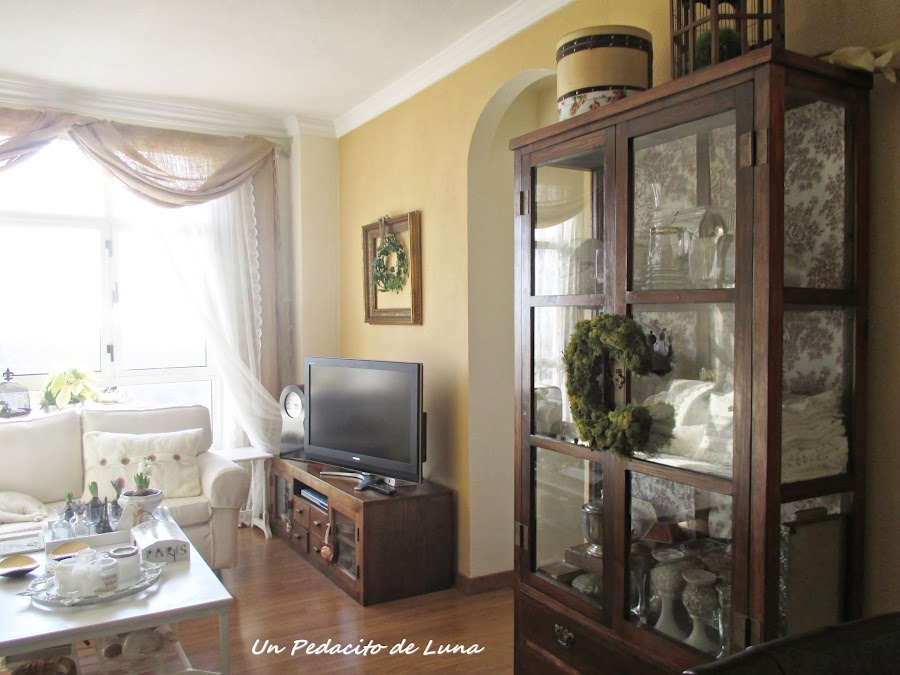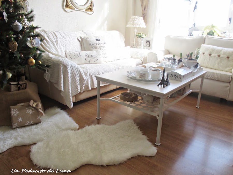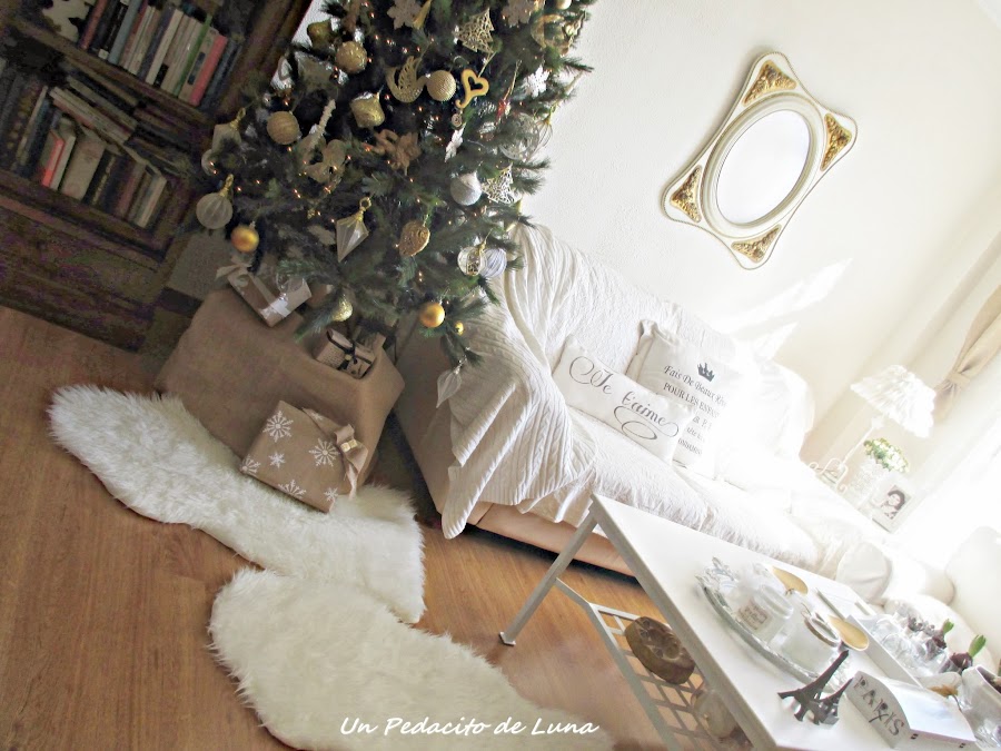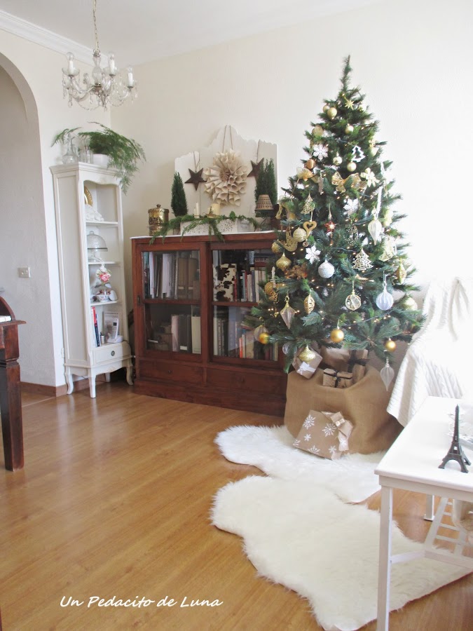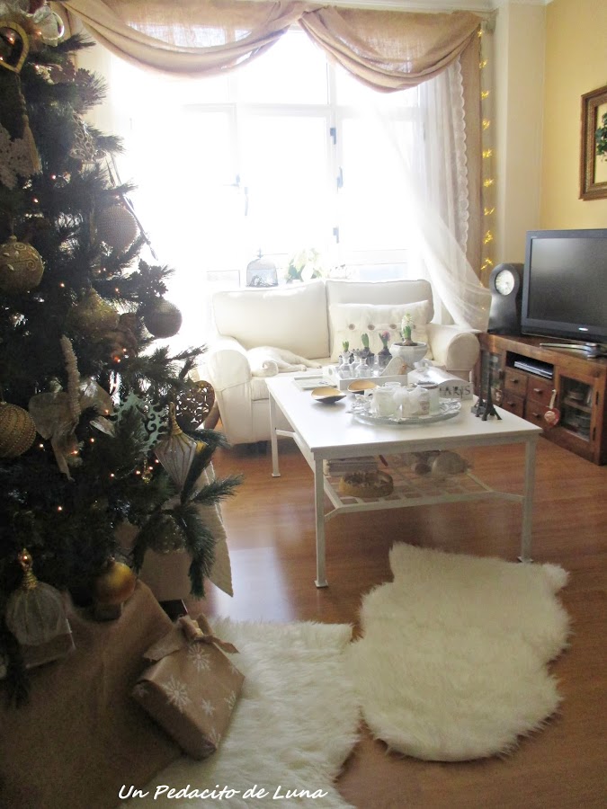 He despejado el salón para dar protagonismo al árbol y poder sentarnos a su lado el día de Navidad y Reyes, aquí como en todos lados, se monta una buena, jajaja....