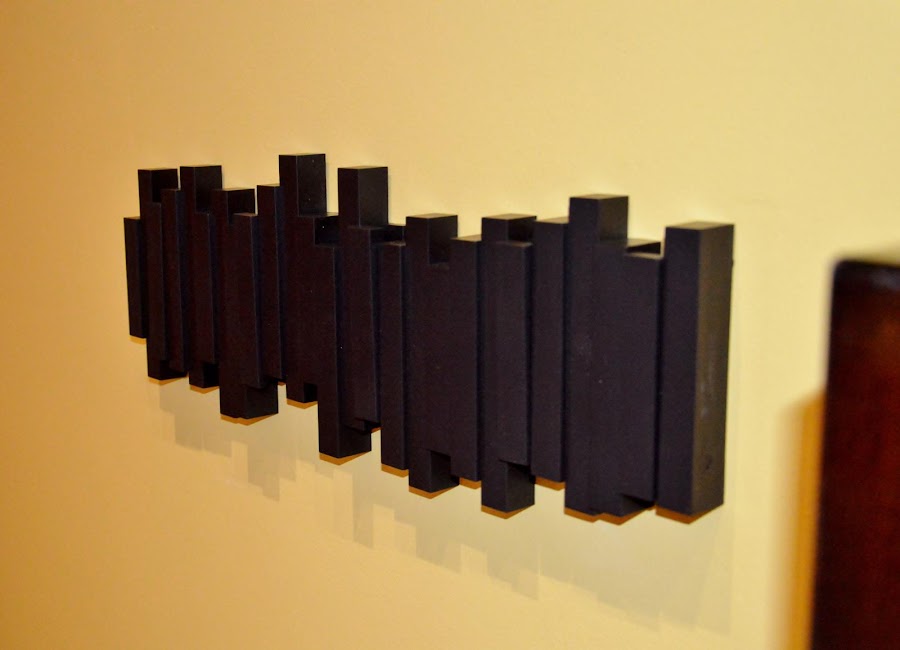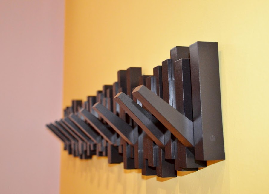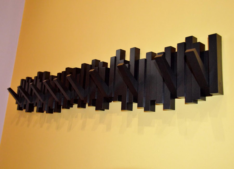 Así, si no hay nada perchado, queda una bonita composición de pequeñas tablillas de madera.