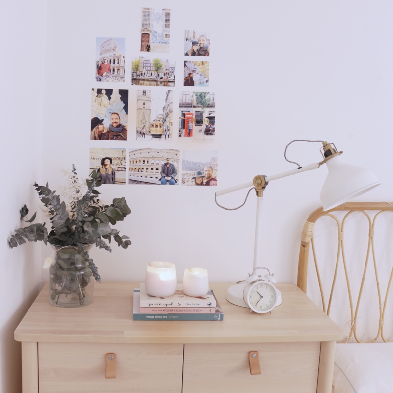 Si te cuesta un poco piensa por ejemplo en nueve imágenes e imprime tres de cada, si quieres algo más coordinado puedes apostar por fotos en blanco y negro o pasarles un mismo filtro.