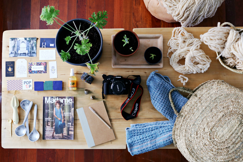 de cocina en algodón que transformaré en un cojín y aceite de argán natural.