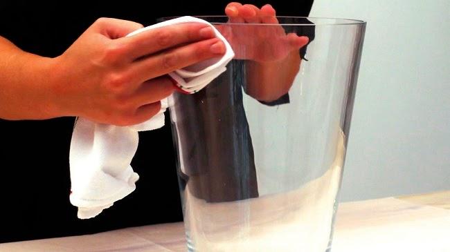 Con un paño de algodón empapado con alcohol limpiamos la superficie del jarrón.