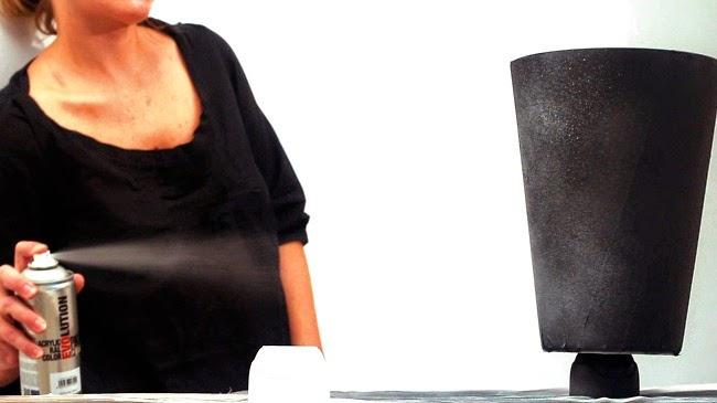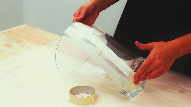 Con la cinta de carrocero creamos las pautas del diseño que queremos crear sobre nuestro jarrón.