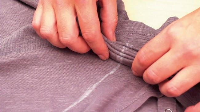 Realizamos varios pliegues (entre 1 – 1,5 cm) manteniendo en el medio la línea guía y hasta completar la camiseta.