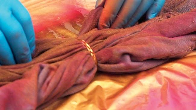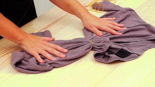 Con una goma fijamos los pliegues haciendo coincidir la goma con la línea guía.