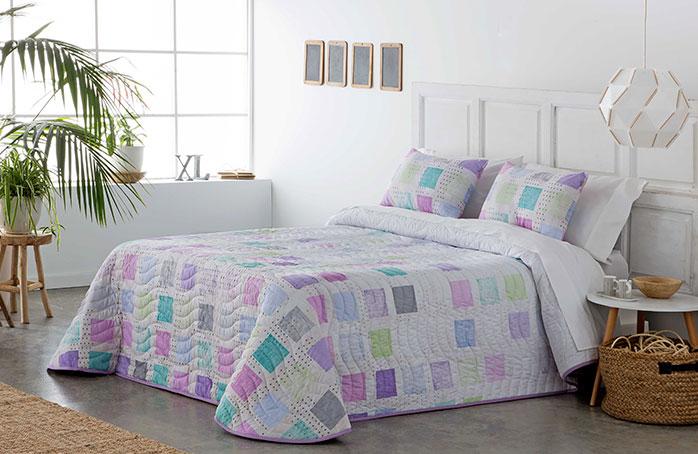 Una propuesta de estilo clásico podría ser la colcha Meri, con un bonito detalle ornamental en su cenefa central; mientras que para quienes prefieran una prenda más moderna y colorida, la alternativa puede ser la colcha Popin, decorada con cuadros de varios colores que destacan sobre su fondo claro.