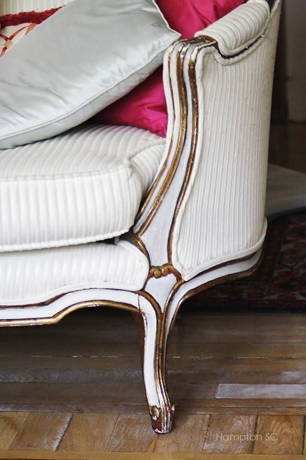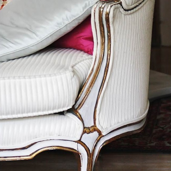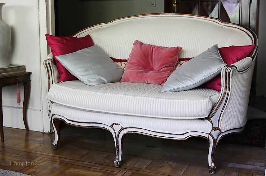 Un antiguo sofá de estilo francés al que se han respetado las marcas
