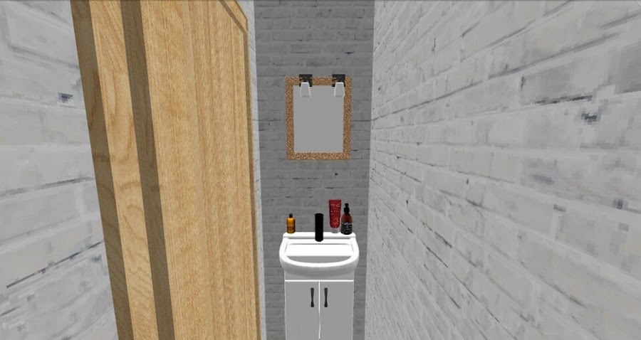 En esta parte, virtualmente hemos añadido un armario para poder guardar toda la ropa y en el espacio que queda al lado, hemos creado un pequeño baño para su aseo diario. Un sanitario y un lavamanos es todo lo que necesita. De esta manera, podemos aprovechar mucho más el espacio. En este caso lo hemos hecho separado, pero otra idea podría ser montar todo un armario de pared empotrado, y camuflar el lavabo dentro de una puerta de armario, así a simple vista se vería todo uniforme.