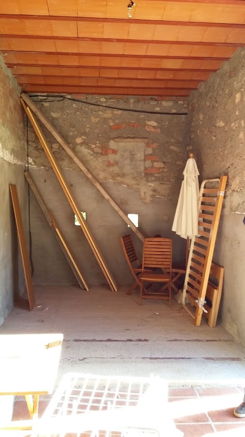 La estructura en si de la casa es preciosa. Paredes de piedra de masia, techos de bóveda catalana, y unos grandes ventanales por donde entra la luz. Aquí abajo os dejo una fotografía del espacio actual.