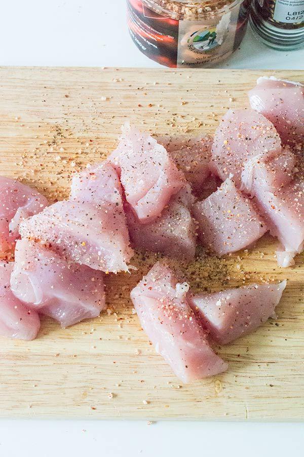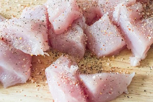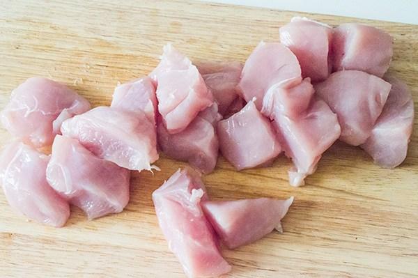 Cortamos el pavo en trozos de unos 5 cm mas o menos.