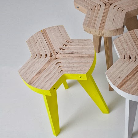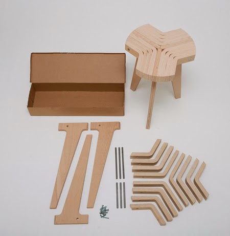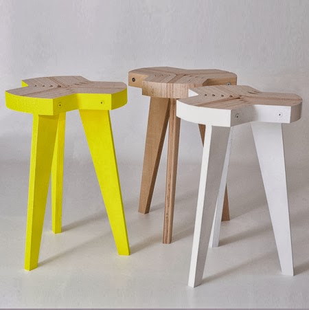 We like the simple and beautiful furniture, that suggests and transmits us something, and that when we see it we simply fall in love. Offset! It´s a stool made of bent plywood strips and joined between them by metallic bars.