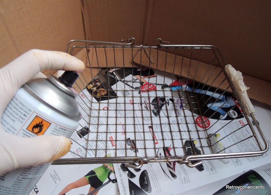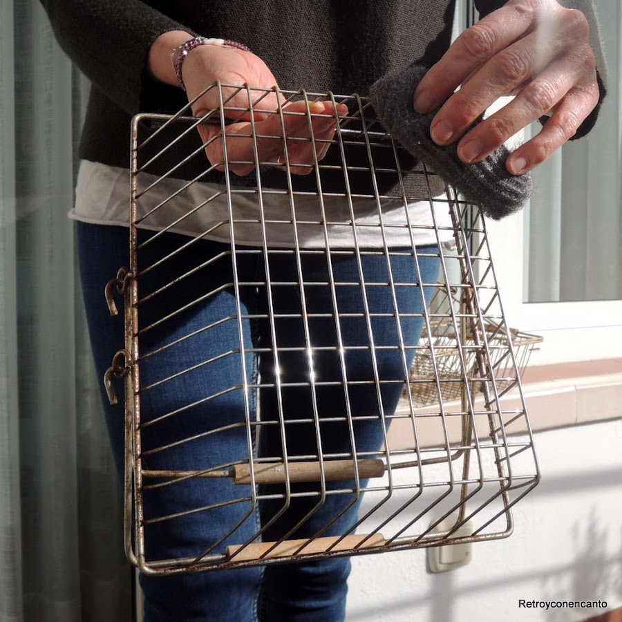 Perfectas no quedaron, ¡pero casi! De todas formas iban directas a pintura, así que tampoco importaba mucho y, además, se llevan las cosas con un poquíto de óxido ¿no? Y el nuestro, encima, ¡es natural...! Echamos manos de los sprays; uno de ellos a la tiza y los otros dos acrílicos. Cubrimos los mangos de madera para conservarlos en su color.