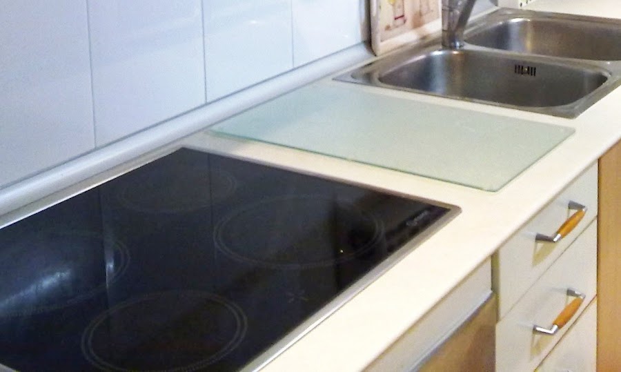 Estuvimos mirando muchas posibilidades, sobre todo buscábamos un material que fuera barato y fácil de instalar. Aunque hacerlo uno mismo es un poco complicado, mucho mejor que te ayude un profesional ya que las encimeras están sujetas a las baldosas de la pared y el resultado puede no ser el que esperas.