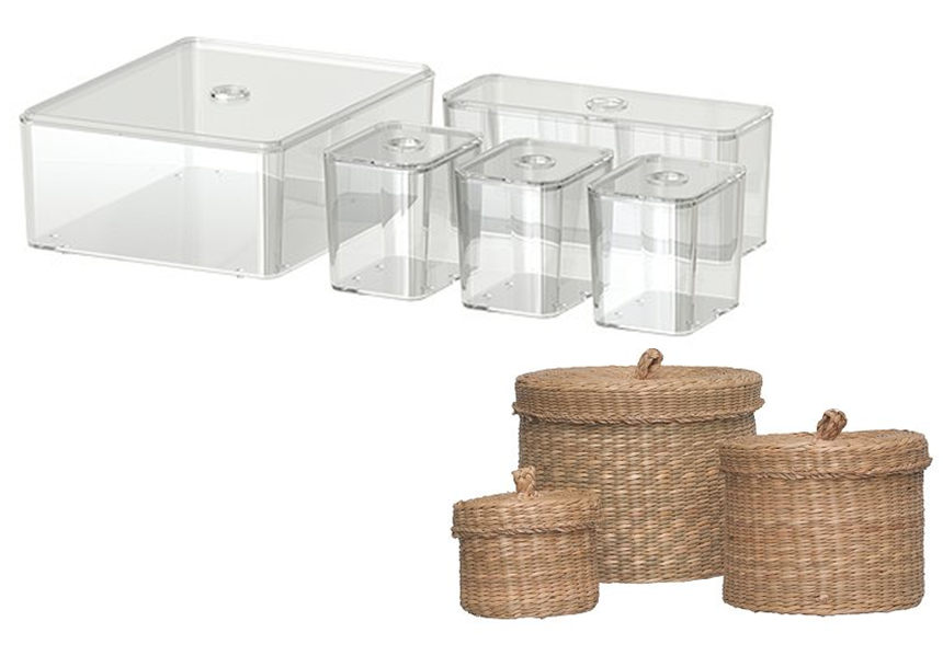 En un arrebato este fin de semana he decidido poner un poco de orden en los cajones, con contenedores transparentes de diferentes tamaños y cestas de junco marino.