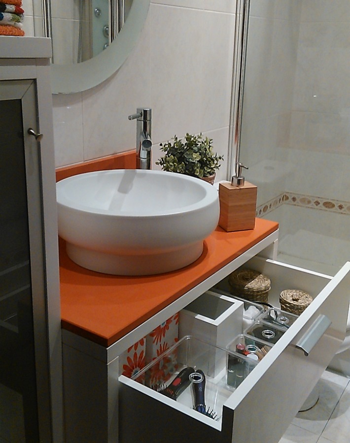 Hace casi un año os enseñé como distribuir el baño pequeño de mi casa, destinado al uso de mis hijos. Y aunque por fuera siempre está limpio y recogido, los cajones ya es otra historia, las prisas diarias han hecho del modulo central bajo el lavabo un gran caos de desorden.