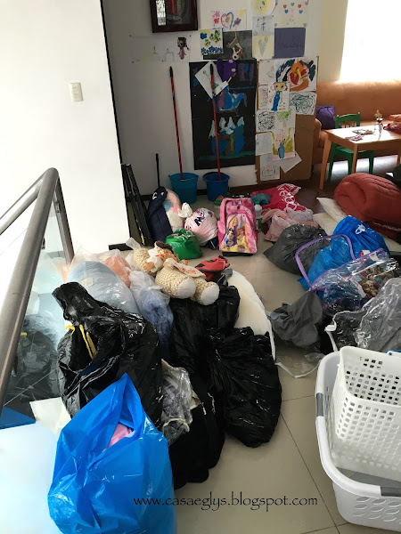 Ya finalizado el proceso de depuración de libros, comenzamos con el closet y las cajas que estaban dentro de la habitación. Mi cliente se deshizo de todo lo que ven en las imágenes, carreola, juguetes, monopatín, almohadas, edredones, mochilas, artículos de navidad, ropa y mucho más. Todos estos artículos también fueron donados al albergue.