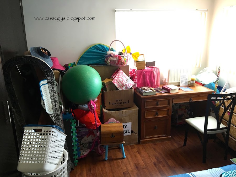 Esta foto nos muestra el antes de la habitación, con muchas cajas desperdigadas.