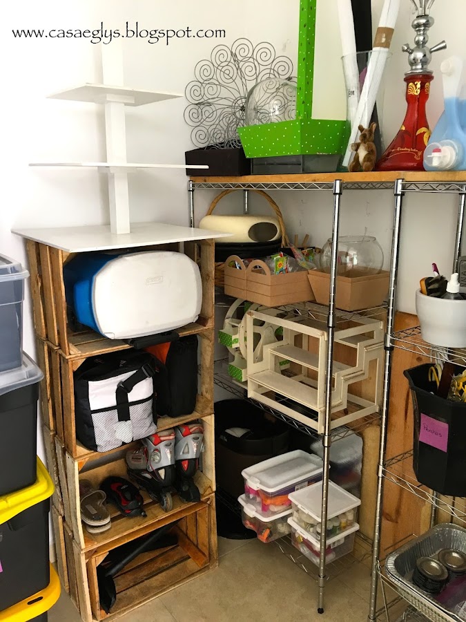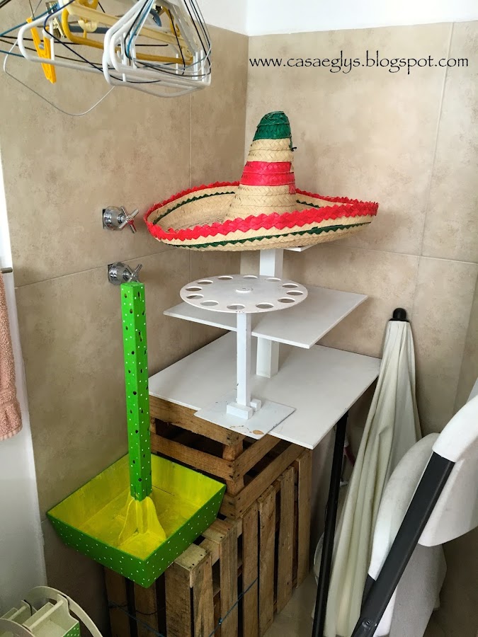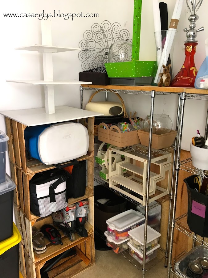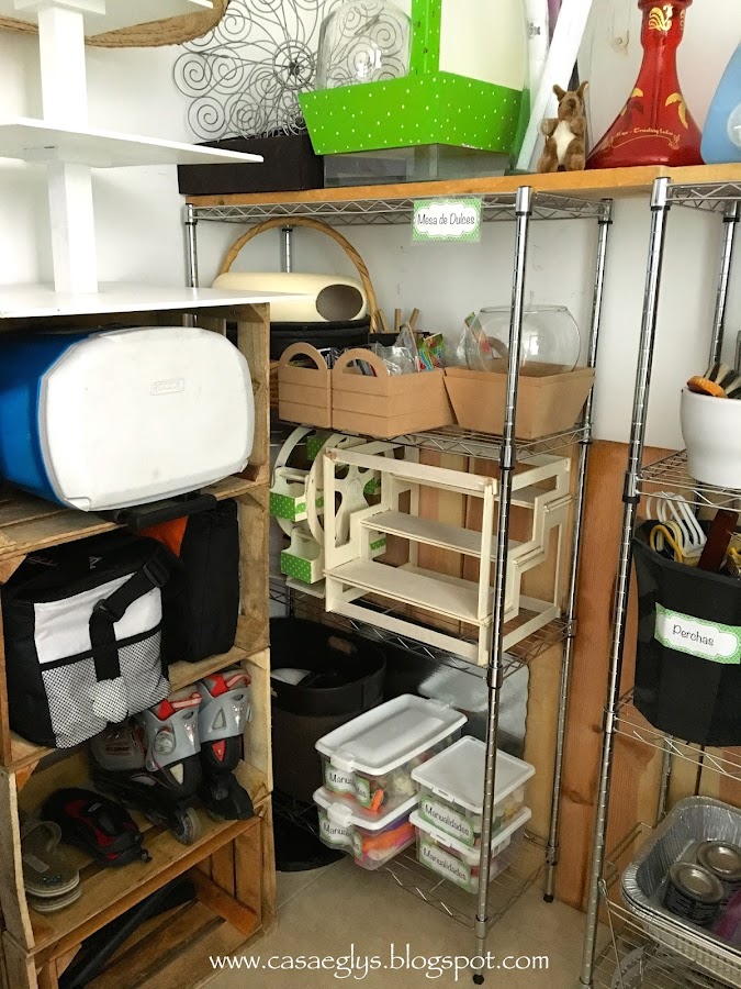 Una de las hijas de mi cliente trabaja realizando mesas de dulces y lo que más anhelaba era que sus artículos destinados para tal fin estuvieran en un sólo lugar. Ella también utiliza estas cajas de frutas para diferentes decoraciones, aquí las aprovechamos como un estante más y no alteramos el presupuesto de nuestra cliente.