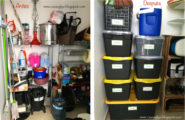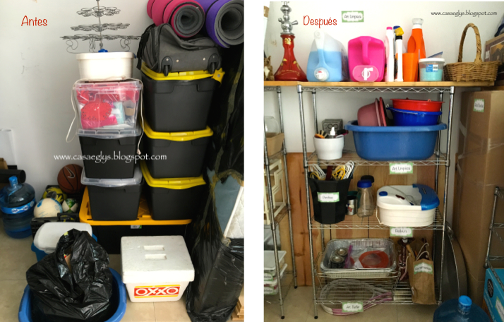 Lo primero que hicimos fue vaciar el lugar y agrupar las pertenencias y artículos por los mas parecidos: artículos de limpieza, juguetes, artículos de fiestas, artículos de temporada, etc. Mi cliente organizo las cajas de herramientas y reorganizamos algunas cajas de temporada, como navidad y halloween. También depuraron algunos artículos que ya no usaban y que ocupaban un lugar valioso.
