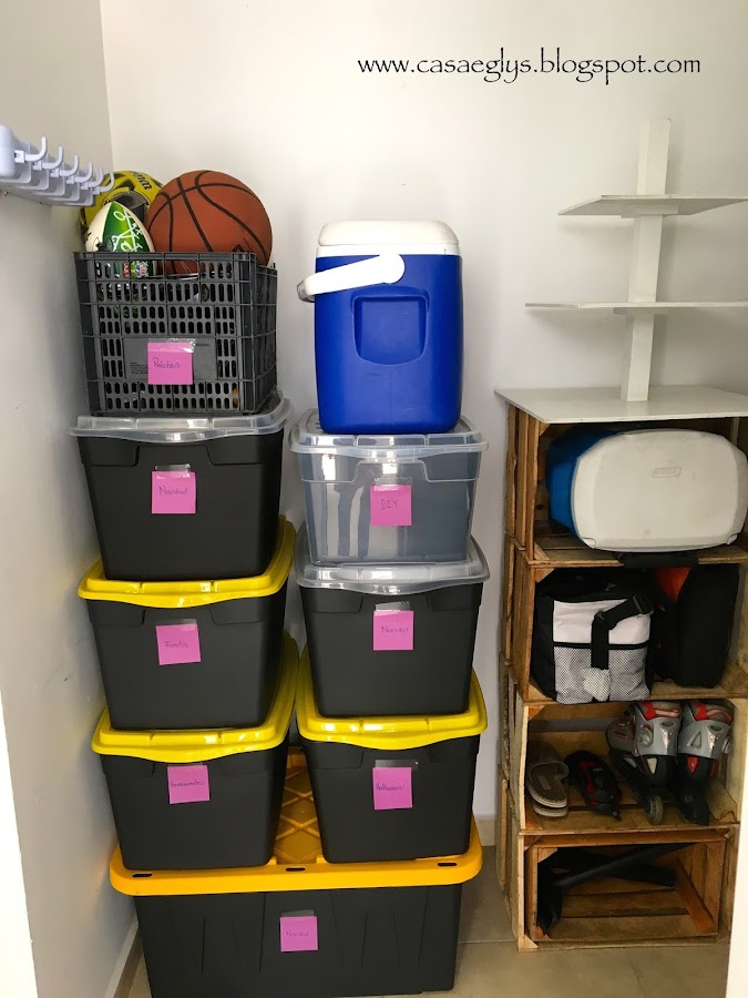 La bodega: con post-it identificamos cada contenedor y posteriormente realizamos unas etiquetas que ayudaran a ubicar con facilidad sus pertenencias y lo más importantes a dejarlas en el mismo lugar una vez la hayan utilizado.