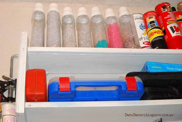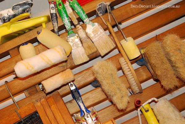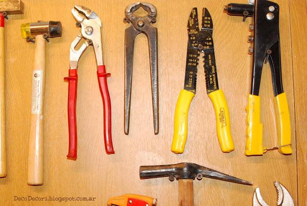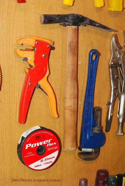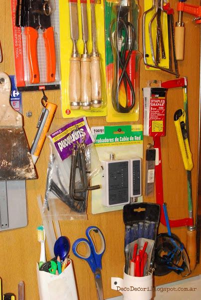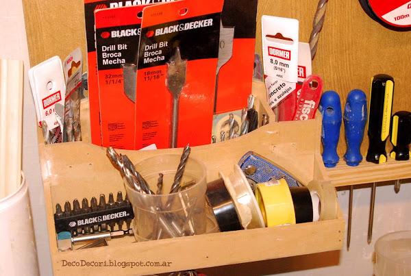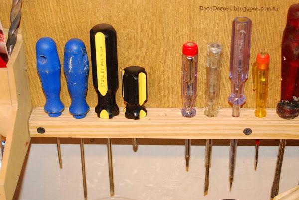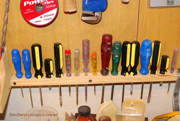Con maderas que había en el taller, Gus me ayudo a amurarlas a la pared y con tornillos fui colocándolas con cierto patrón, las más utilizadas más a mano.