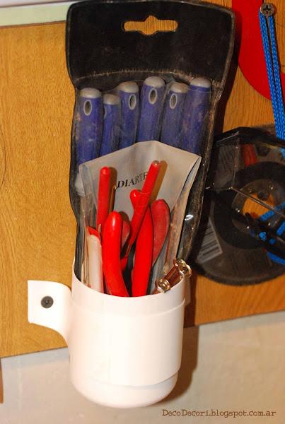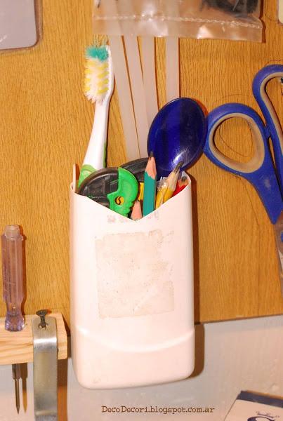 Tenía un lapicero con divisiones que me vino perfecto para las mechas y cintas que siempre tienen que estar a la mano.