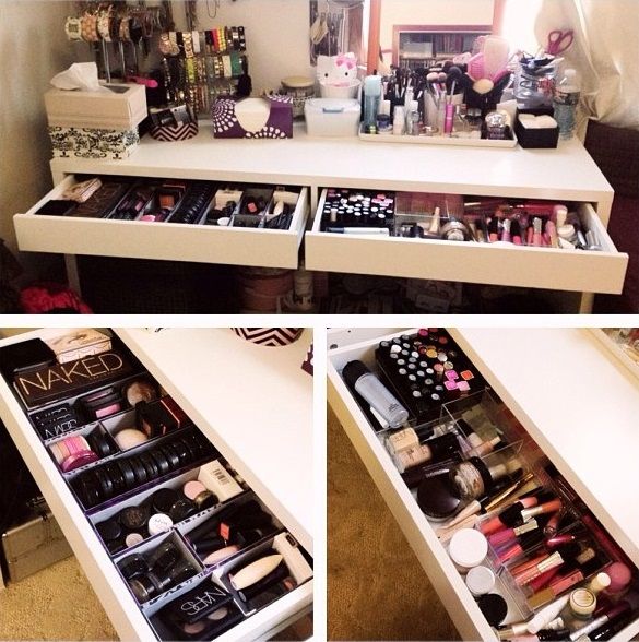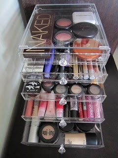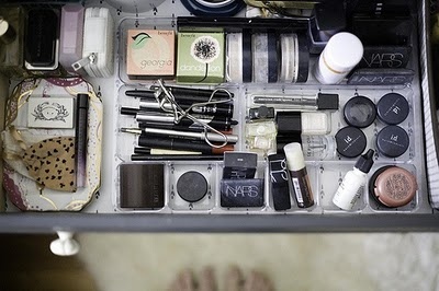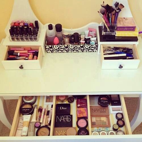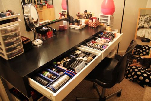 No se si sabéis que no es muy recomendable guardar el maquillaje en el baño. Pues yo me enteré hace poco y ando como una loca intentando buscarle un buen sitio a todos mis potis, tanto maquillaje como cosmética en general. Al final he pensado en transformar una mesa que tenía en la cocina y que no usábamos, y usarla como tocador... Necesita algo de pintura, un espejo, luces y muchas horas de cariño, pero eso es harina de otro costal y os lo contaré en otra entrada de mis locos proyectos, ya que aún está en proceso ^^ .