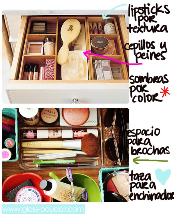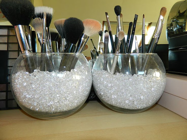 Los recipientes para las brochas y pinceles de maquillaje también me parece una idea muy práctica, aunque no se si será muy aconsejable dejarlo todo al aire y que se pueda llenar de polvo...¿qué pensáis vosotros?...
