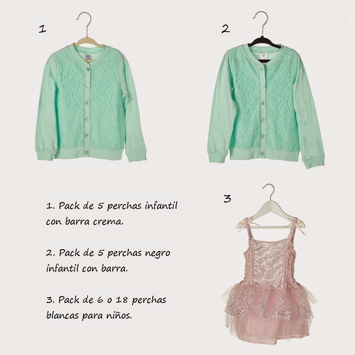 En la tienda Howards Storage World, podéis encontrar packs de 4, 5, 6, 10 o 18 perchas infantiles.