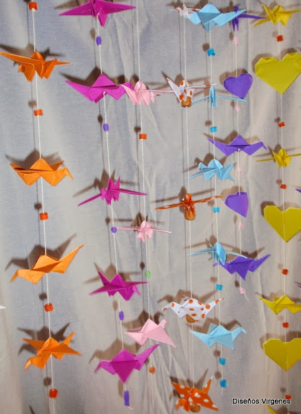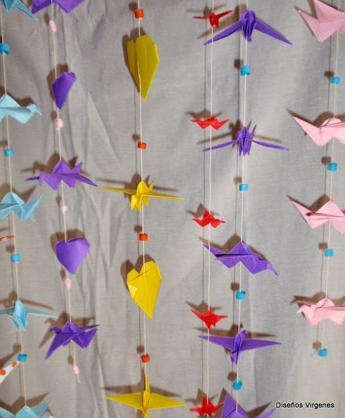 Origami Colgantes de grullas, corazones!! con detalles en quilling