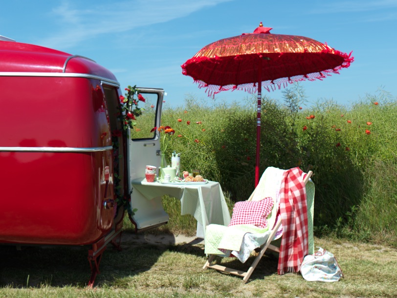 A esto yo le llamo: el Picnic-Chic perfecto. Aunque hoy el día se ha despertado un poco gris, el sol volverá a salir, y podremos seguir soñando con una caravana como esta, para hacer un picnic campestre perfecto.