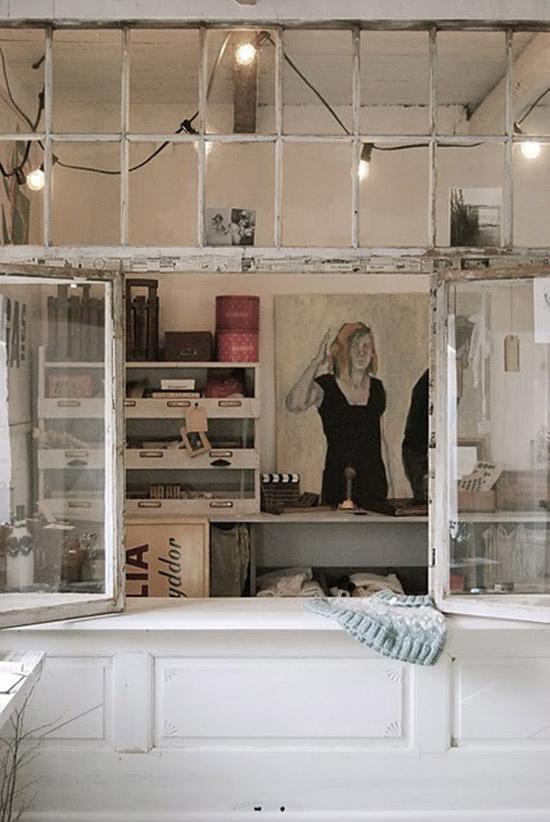 Fuente: Dishfunctional Designs Otra idea diferente es crear un panel divisorio con una ventana antigua. Conseguirás un efecto rústico y un tanto shabby chic, y resultan cálidas y acogedoras. ¿Te gusta?