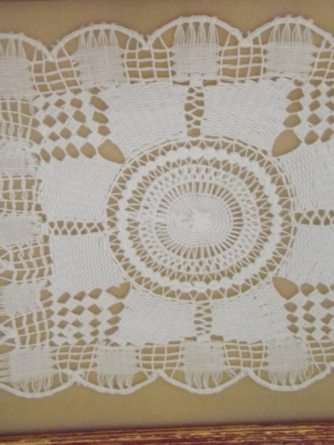 Uno de mis preferidos está colocado en un sencillo marco antiguo, se vino conmigo desde otra de nuestras islas, Lanzarote y esta formado por círculos de hilo bordados a mano con muchísima paciencia...