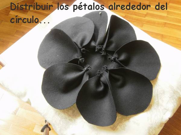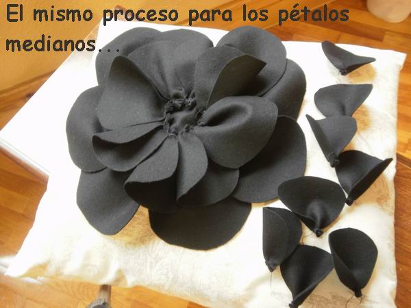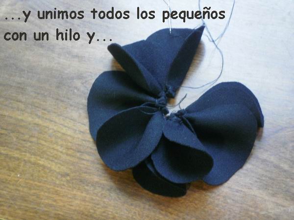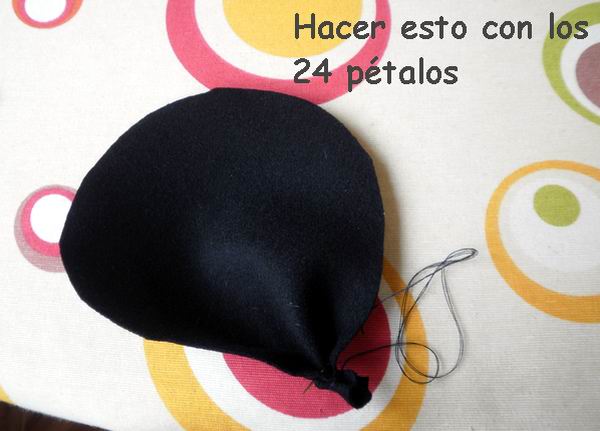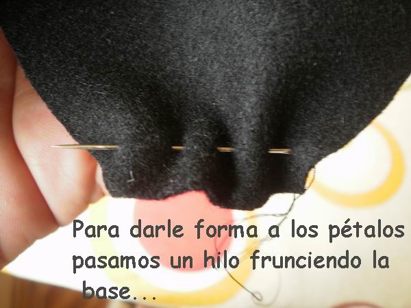 La tela esta doblada, así me salen en doble de pétalos (para las dos flores )