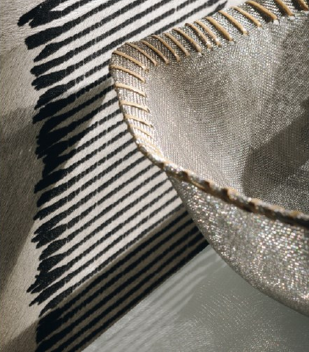 Parure, efecto de tejido artesanal con relieve en screen metal o aterciopelado negro sobre piel animal lisa, (206,38 euros / rollo) de www.elitis.fr