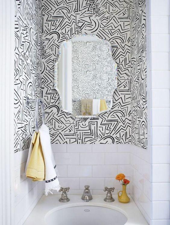 Su uso es muy recomendado cuando tenemos un cuarto de baño muy serio, sencillo, con poca gracia... con el papel podemos ayudar a otorgar un toque de originalidad y personalidad a la estancia. Os voy a dejar con algunos ejemplos: