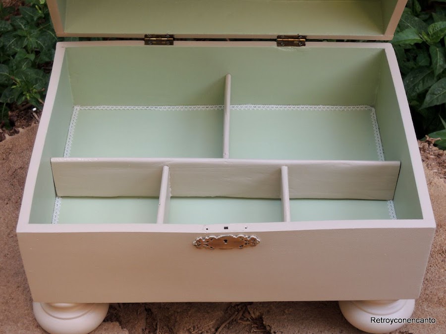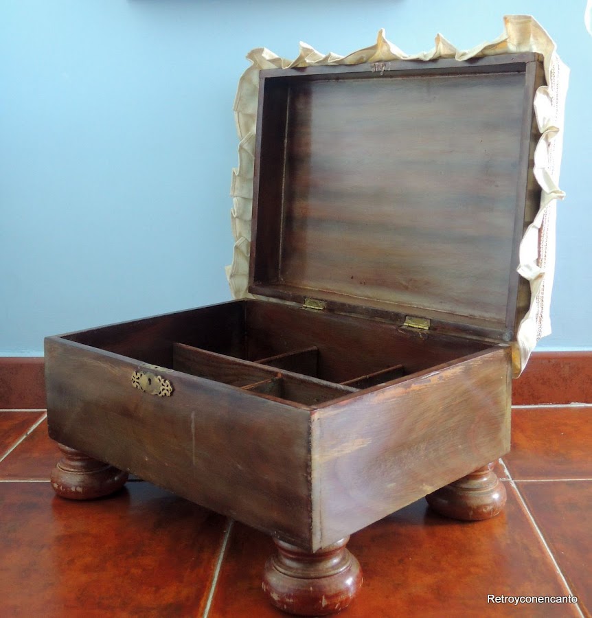 Aunque en la foto no se aprecie, la caja no era de madera maciza, sino que estaba recubierta de una chapa en muy mal estado, y su color era muy distinto al de las patitas.