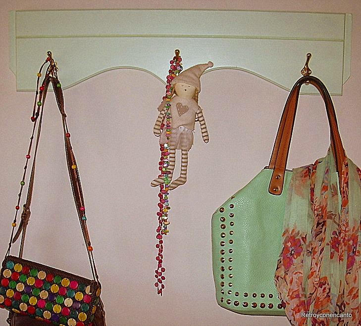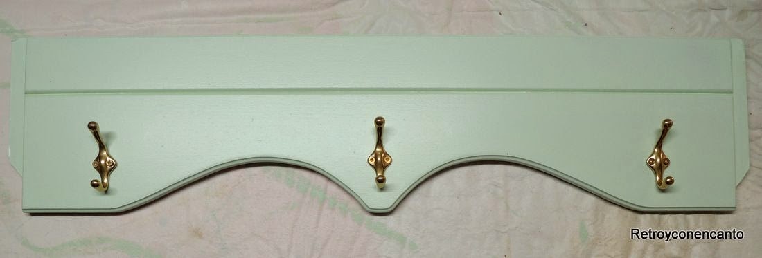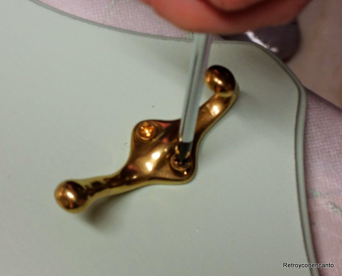 Tras una mano de barniz, atornillamos unas perchitas doradas en lugares estratégicos...