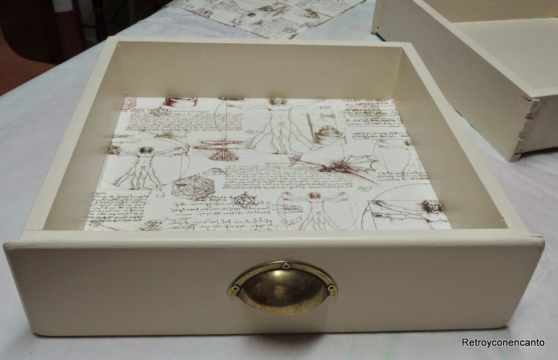 Y forramos el interior de los cajones con él.