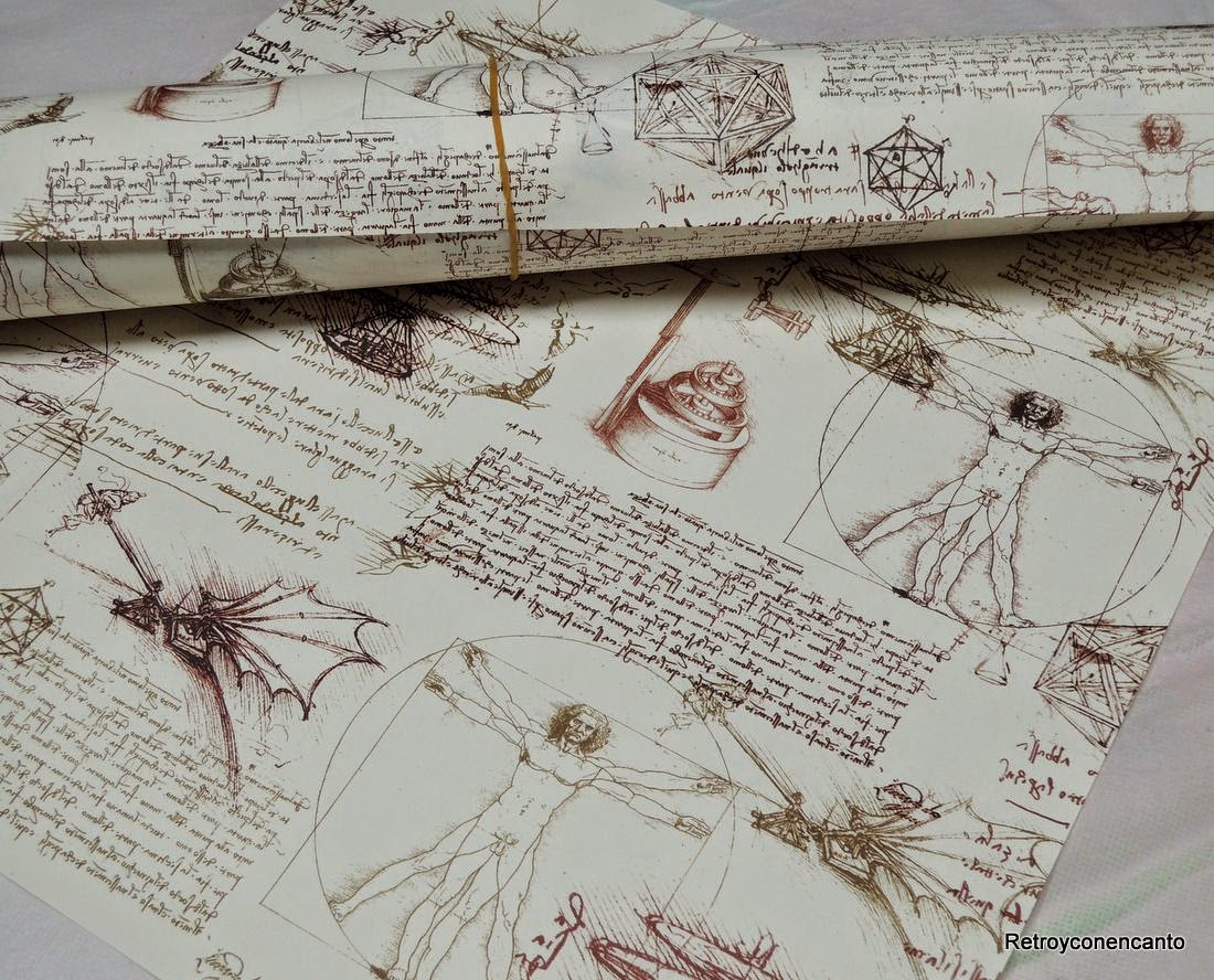 Encontramos este bonito papal de regalo con escritos y bocetos del hombre del Renacimiento por excelencia, el admirado Da Vinci.