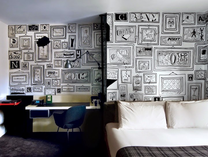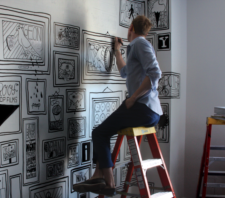 El artista Timothy Goodman decorando las paredes del Ace Hotel de New York.