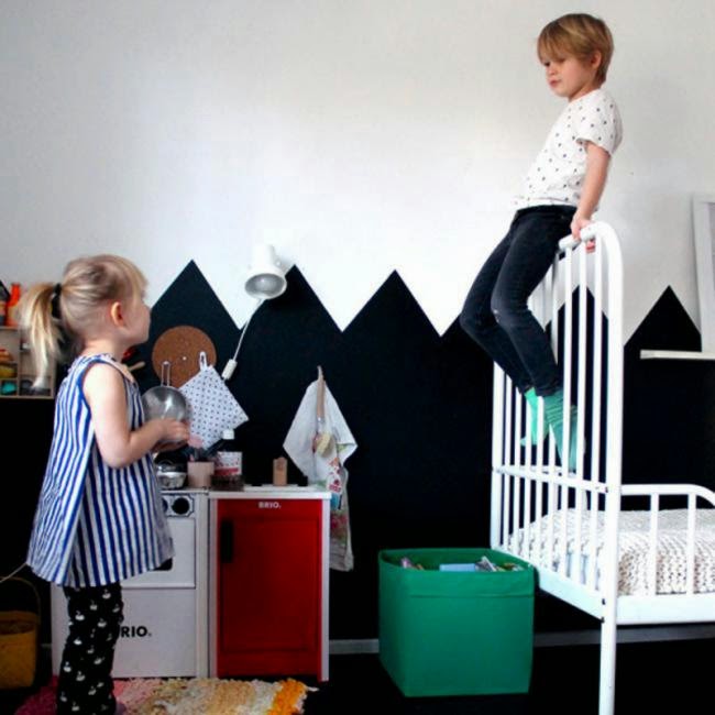 Si te gusta el estilo nórdico, los colores neutros y la simplicidad, la mejor opción es la geometría en dos colores, por supuesto el color oscuro en la zona baja. Un diseño simple pero que dará movimiento y estilo a la habitación de tu hijo.