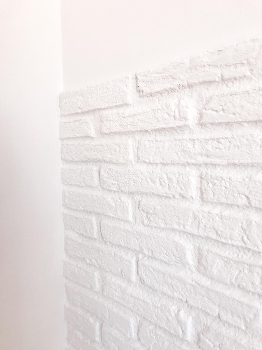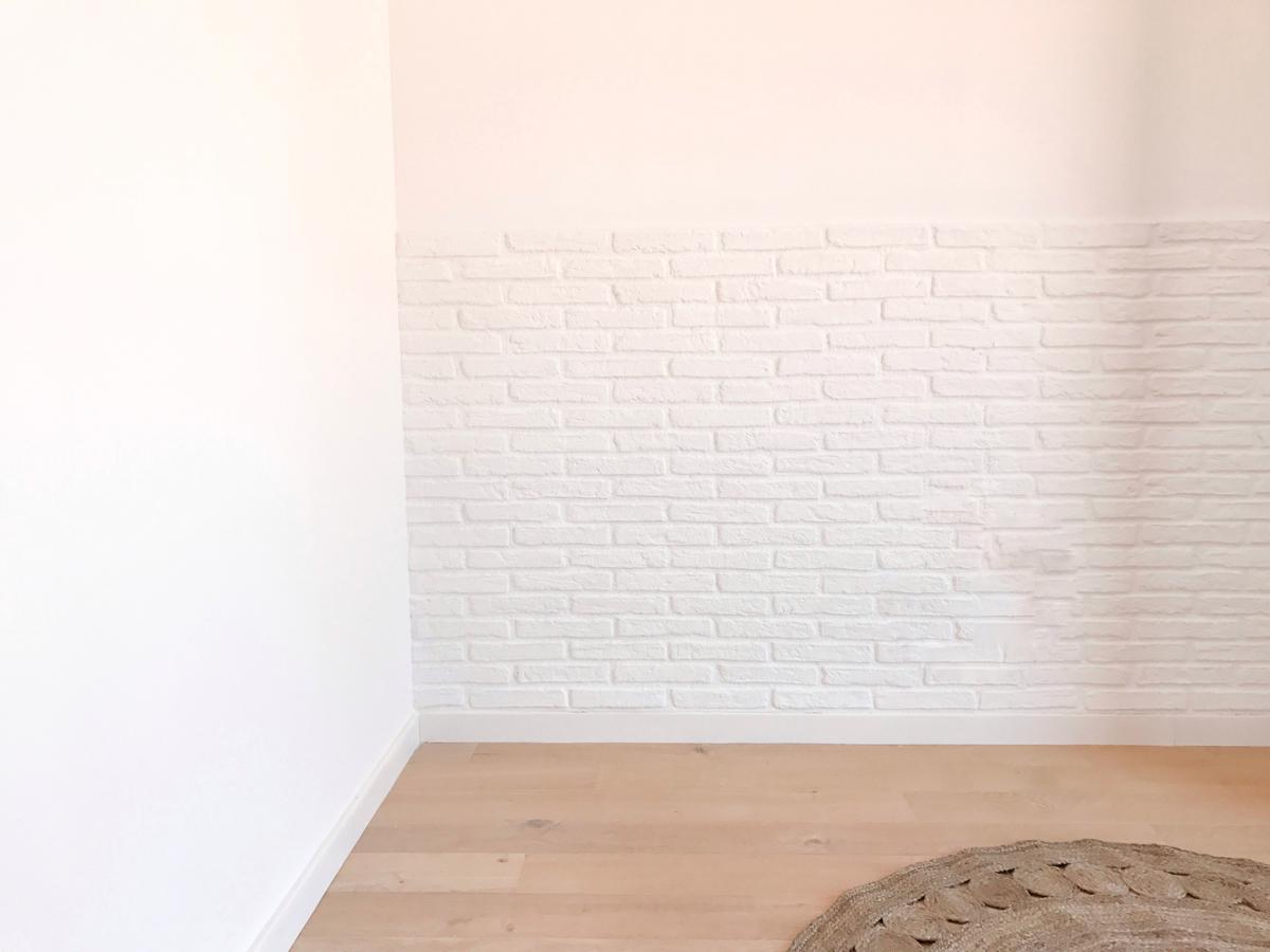Y no fue hasta que nos pusimos de lleno en la nueva decoración de la habitación de Valentina, que Helga, de hhhaus (la interiorista que nos está haciendo el proyecto) me propuso la genial idea de utilizar de nuevo los paneles de imitación de ladrillo, pero en este caso sólo en la mitad de la pared, como cabezal.