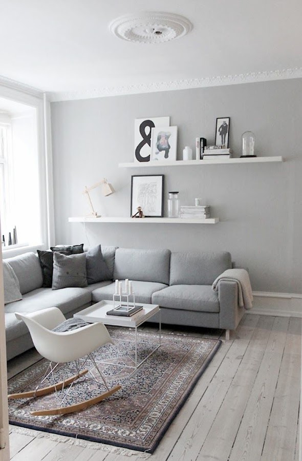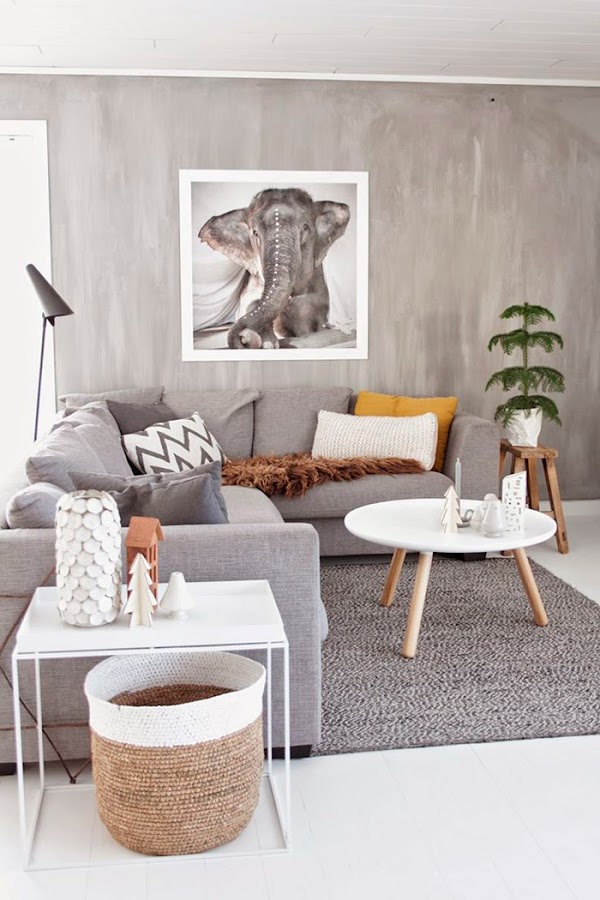 Nuestro salón tiene una combinación de colores blanco-negro y aunque es bonito, nos estamos cansando un poco de tanto negro, así que buscando una nueva gama de colores, nos hemos topado con el gris, que a decir verdad, ya hace mucho que lo tenemos entre ceja y ceja.