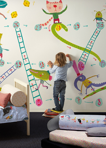Pero además, está colección tiene algo de “especial”, los niños podrán crear su propio mundo de colores vivos, podrán colorear sobre los murales, decorar con el set de adhesivos recortables y jugar con el juego Snakes & Ladders.