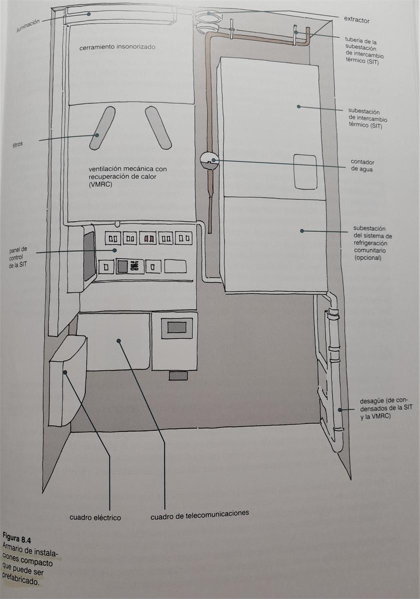 Agua caliente (ACS): tecnologías innovadoras como la recuperación de calor de las aguas residuales y la energía solar térmica. Las pérdidas se pueden reducir con un diseño eficiente de la red de distribución y con la instalación del acumulador en una ubicación central. El acumulador principal y los tubos de distribución deben estar completamente aislados para reducir las pérdidas de calor. Una distribución que reúna la cocina, el lavadero y los baños en una misma zona, disminuirá el consumo y los costes. Para reducir pérdidas de calor, la caldera y la bomba se instalarán cerca del acumulador.
